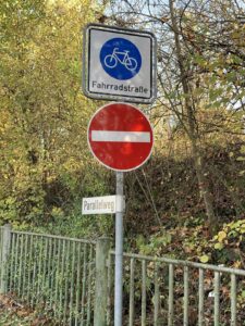 Eine weitere Veränderung: die Verkehrsführung im Parallelweg und der Albanstraße (bis zur Einmündung Hubertusstraße) wurde geändert. Der Bereich ist ab sofort als Einbahnstraße ausgewiesen, d.h. der Parallelweg ist nur noch über die Straße Am Tunnel für Fahrzeuge befahrbar. So soll erreicht werden, dass der “Durchgangsverkehr” künftig nicht mehr auf die Nebenstraßen ausweicht, sondern die Karthäuser Straße und die Brunostraße nutzt, und die Nebenstraßen entlang der Bahnstrecke somit für Radfahrer aber auch für Anlieger sicherer werden.